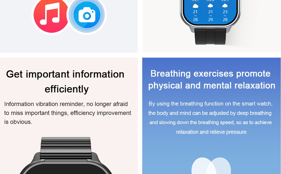 [Stay connected on the go, go, go.]D8pro watch is the perfect fitness partner. It motivates you to stay active, tracks all your workouts, and gives you the metrics you need.Exercise your options. From running and strength training to Yoga and Cycling, Watch delivers a healthy number of ways to work out — and all the metrics【Steps, calories, distance】 you could want.