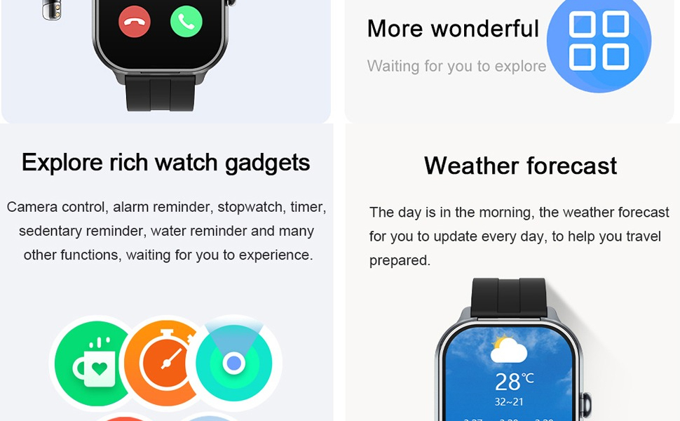 [Stay connected on the go, go, go.]D8pro watch is the perfect fitness partner. It motivates you to stay active, tracks all your workouts, and gives you the metrics you need.Exercise your options. From running and strength training to Yoga and Cycling, Watch delivers a healthy number of ways to work out — and all the metrics【Steps, calories, distance】 you could want.